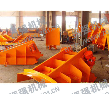 給料機的給料過程是利用特制的振動電機或兩臺電動機帶動激振器驅動給料槽沿傾斜方向作周期直線往復振動來實現,當給料槽振動的加速度垂直分量大于重力加速度時,槽中的料被拋起,并按照拋物線的軌跡向前跳躍運動,拋起和下落在瞬間完成,由于激振源的連續激振,給料槽連續振動,槽中的煤連續向前跳躍,以達到給料的目的。DZG電機振動給料機安裝與調試、使用與維護